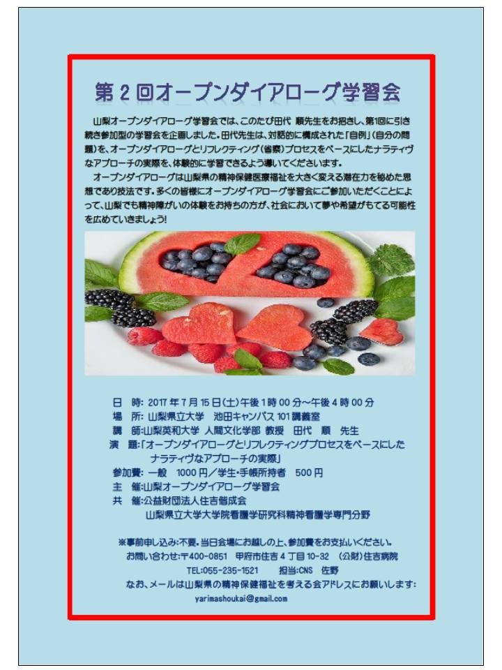オープンダイアローグは山梨県の精神保健医療福祉を大きく変える潜在力を秘めた思想であり技法です。多くの皆様にオープンダイアローグ学習会にご参加いただくことによって、山梨でも精神障がいの体験をお持ちの方が、社会において夢や希望がもてる可能性を広めていきましょう!