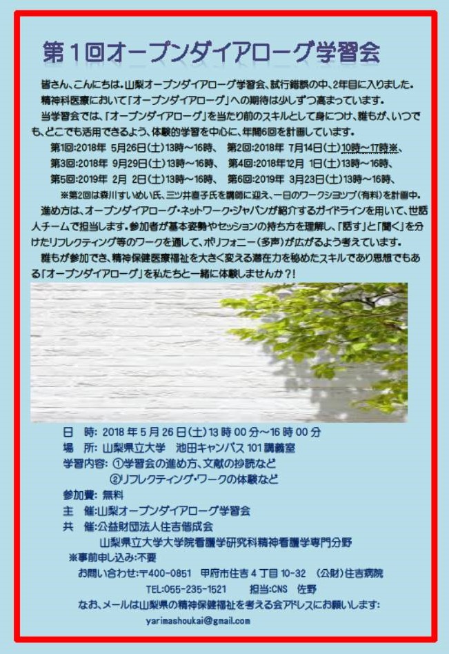 主 催:山梨オープンダイアローグ学習会