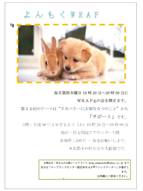 ※詳しくは山梨の精神保健福祉を考える会のブログをご覧ください→https://yarimashoukai.blogspot.com/2018/10/wrap10.html