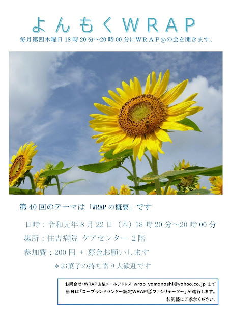 ※詳しくは山梨の精神保健福祉を考える会のブログをご覧ください→https://yarimashoukai.blogspot.com/2019/08/wrap8.html
