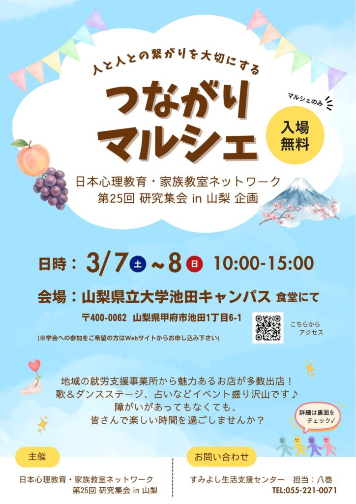 日本心理教育・家族教室ネットワーク第25回研究集会in山梨では、大会期間中に「マルシェ」を開催します。